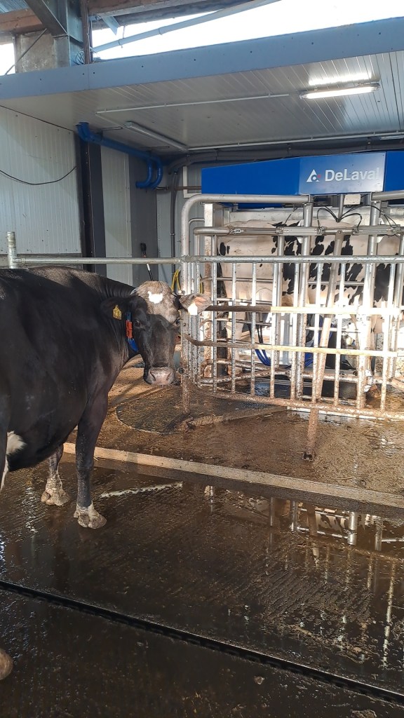 Seit Juli 2023 melken zwei Melkroboter unsere Kühe für uns. Dabei arbeiten sie Tag und Nacht und haben uns eine große Arbeitserleichterung geschaffen. Neben den kürzeren Stallarbeitszeiten geben unsere Kühe durch die Umstellung auf die Melkroboter auch mehr Milch.